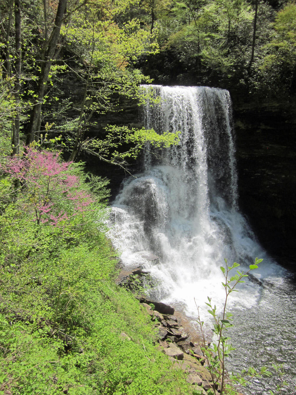 And it really was a beautiful spring day. It had rained 5 inches during a cold, previous week, but was now in the mid-70s with bright sunshine. The woods were lush with spring wildflowers and Little Stony was full, but not overflowing. The Cascades Falls is a protected site on Little Stony Creek in the Jefferson National Forest about 20 minutes from Blacksburg, VA. It is an easy, 2-mile walk to the falls, and a favorite outing for folks in the area. Father and daughter had a great time.