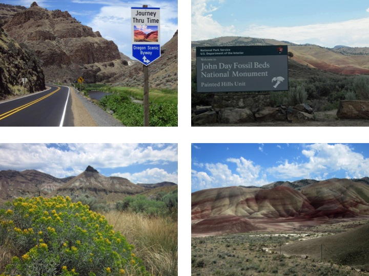 Into Idaho Ken and I decided to ride together to John Day Fossil Beds National Monument. The temps were near 100 again and winds were gusty, but the scenery was spectacular, especially in the painted hills part of the park. John Day had a great visitor’s center: all about the accumulation of fossils of fascinating plants and animals over geologic time in this fossil-rich place. Is the earth only 6000 years old? If you want to believe that, don’t visit this place.