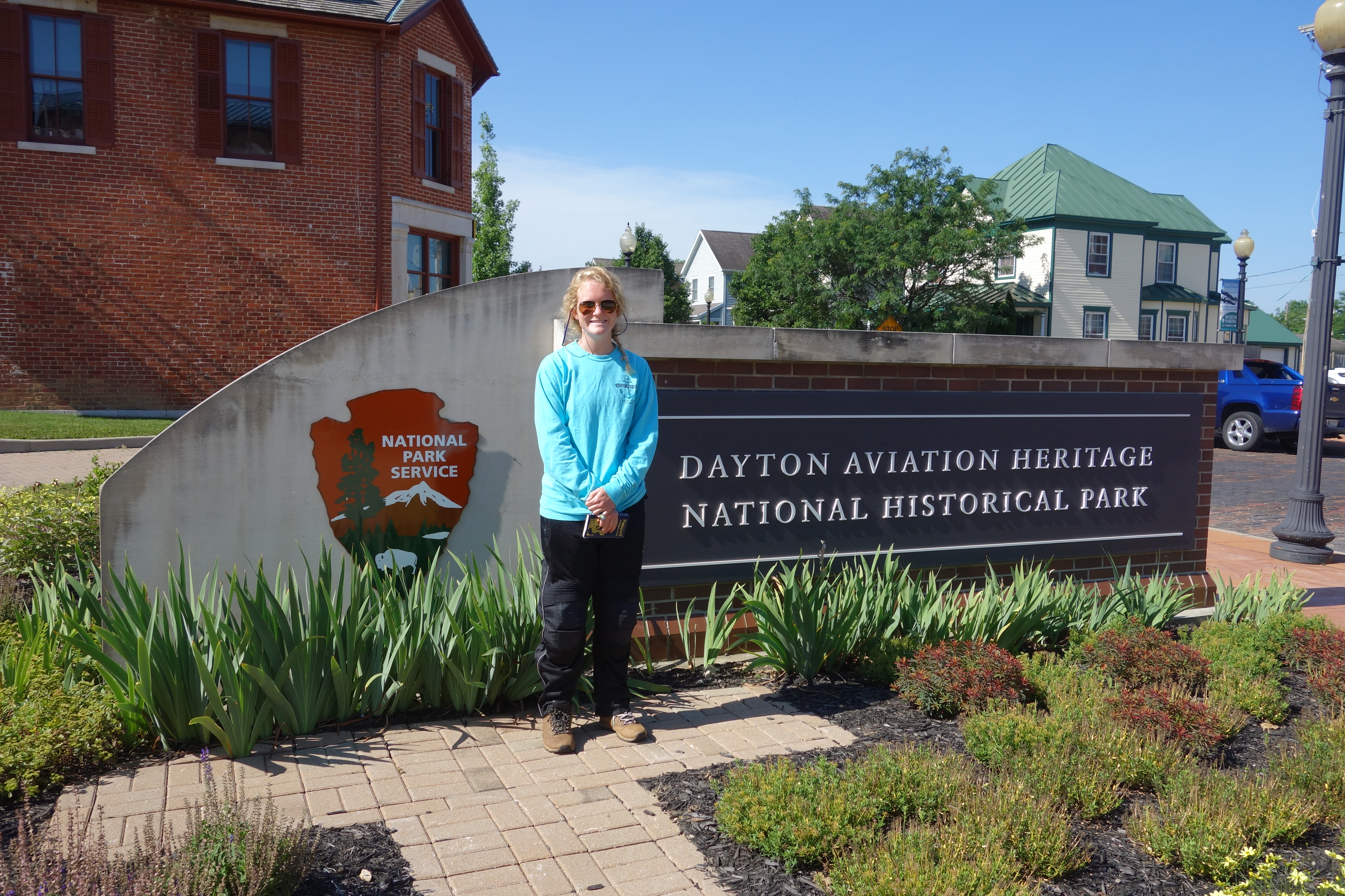 Emily more than tolerated my new hobby of visiting National Park sites during my travels. I bought her a National Parks Passport Guide and she got her first cancellation stamp at Shenandoah National Park, VA, during our shake-down ride. In addition to Hopewell Culture NHP and Dayton Aviation Heritage NHP, we enjoyed a quick visit to George Rodgers Clark NHP in Vincennes, IN, after a drive through tour of Vincennes University where I studied for two years (50+ years ago! Double Ouch!).