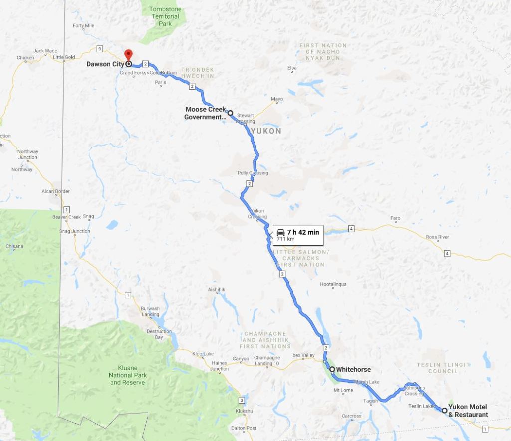 Was it just these guys, or are all Canadians that friendly and accommodating? While paying for the tire change, Jason recommended that we visit the Klondike Rib and Salmon Restaurant on Main Street. “As a matter of fact, after you leave I will call my friend Donna, the restaurant manager, and tell her three good looking guys are on their way for lunch.”