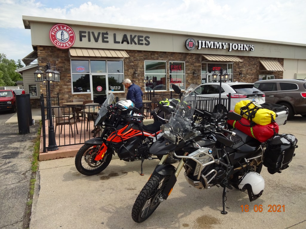After the first 100 miles on the road, we always sought out a coffee shop. There were many; almost all were excellent. Here’s a sample: Five Lakes Coffee (Battle Creek MI), Donkey Coffee and Espresso (Athens OH), Bully Brew (Grand Forks ND), Wake Cup Coffee House (Fort Benton MT), Clark Fork Pantry (Clark Fork ID), Cowboy Joe Coffee (Elko NV), Roastery Coffee (Sedalia MO). Of course, a nice pastry or breakfast sandwich was usually added to the purchased latte or mocha.