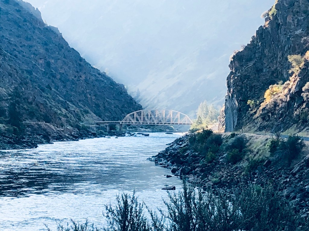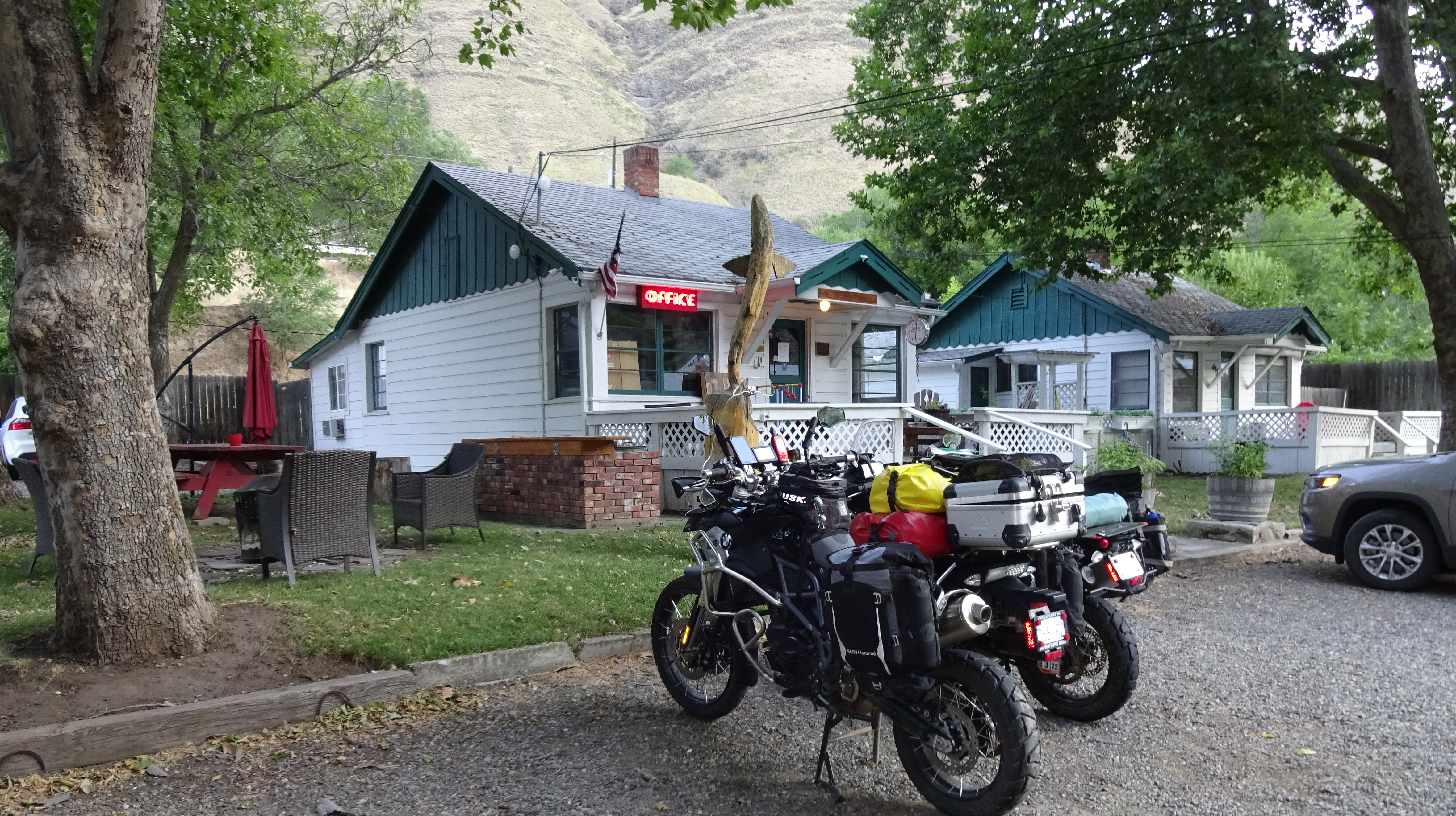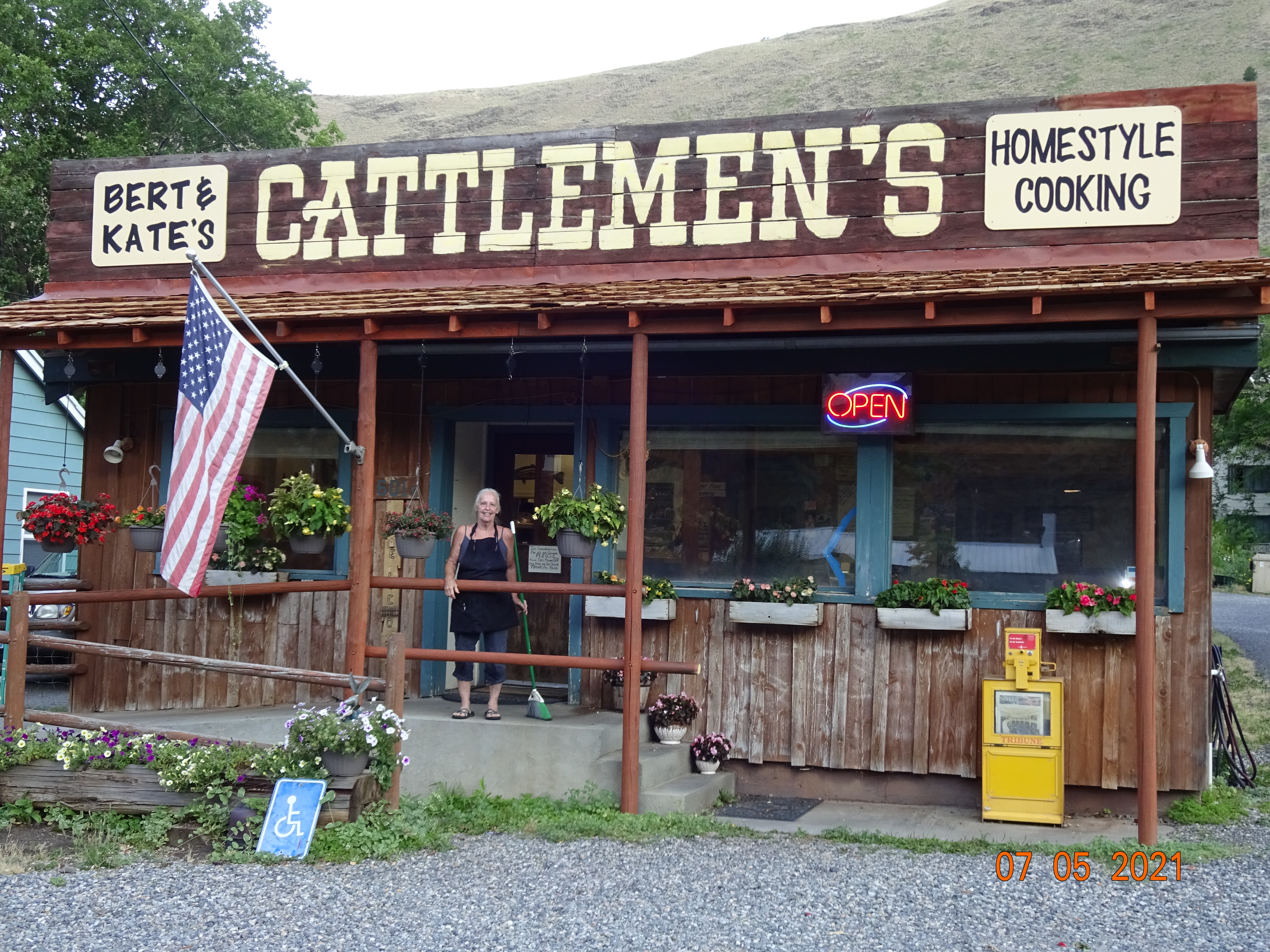 The Riggins detour was made even better with breakfast at Bert and Kate’s Cattleman’s a short walk down the street. Not only did Kate (photo), the proprietor, open at 5 AM, her stories, while she cooked and waited on us, were delightful. She was, in a good way, one of the most eccentric individuals we met along the trail. Born on a mountain above Riggins to musician parents, she is a pianist and graduate of Julliard School of Music in NYC, had a 30-year career as a flyfishing guide who worked around the globe with international clients, and was a bit of a rebel in town for continuing to serve truck drivers in her restaurant during the worst of Covid because they had nowhere else to go. Now she’s been a restaurant owner in her old hometown for the past 15 years, but still, at age 70, has big plans for more adventures. She served a great breakfast and kept us captivated with stories between the early hour of 5 to 6 AM.