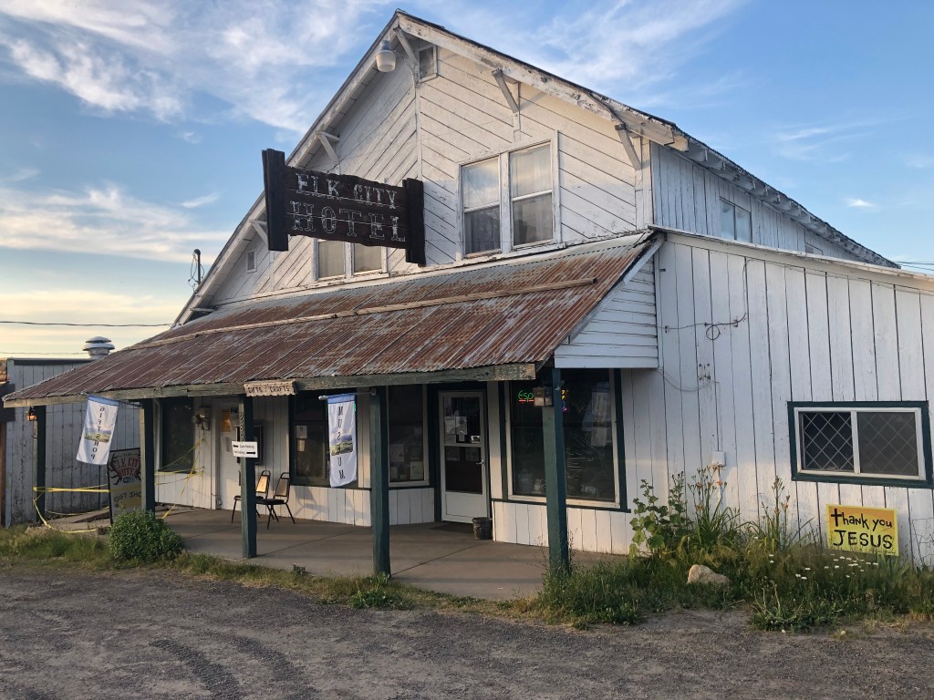 Placer gold was discovered near Elk City ID along a creek in 1861 and within a few months 2,000 people had flocked to the new diggings. After several promising spots of gold were found and quickly mined, the miners gave up, but timber, ranching, and tourism have kept Elk City from becoming a ghost town; the population at the 2010 census was 125. Coming off a long day across the Magruder Corridor, Elk City was a welcome sight. It had everything we needed: Gas, dinner, lodging at the Elk City Hotel (photo), and cold beer at the Reno Club across the dirt Main Street.