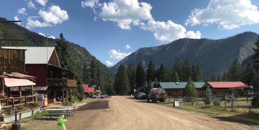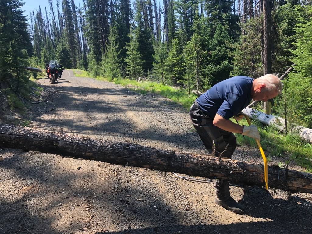 We departed the old mining town of Pierce, connected with the Lolo Trail, and traversed about 30 miles before encountering uncleared winter’s deadfall. We had gotten bad intel from two sources that the trail was open—our sources must have been lost or playing a joke. We backtracked the 30 miles, dropped down to Kooskia, spent the night at a KOA, then rode up Highway 12 along the Lochsa River to reconnect to the BDR route. No worries; it was a lovely ride along the Lochsa River through Lolo Pass and beyond.