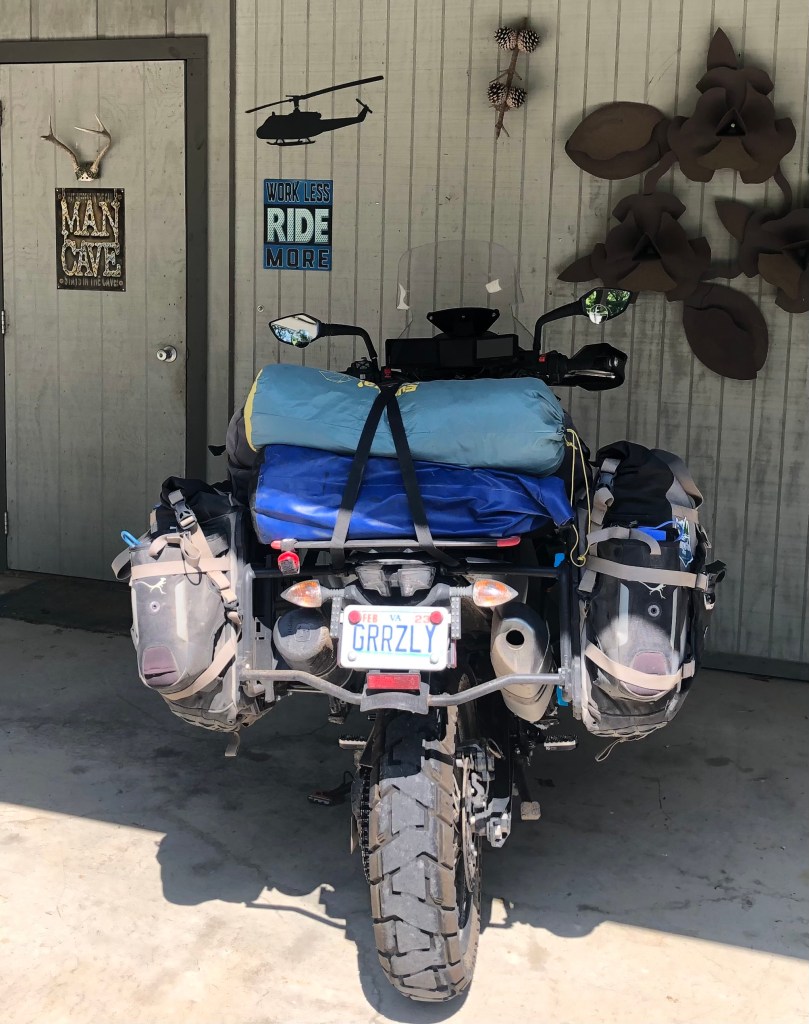 After 30 days, 1,200 miles of riding dirt and gravel, and a 7,082-mile round trip, it was time to put GRRZLY back in the barn for a while. Jeff and I went separate ways when we reached Beckley, WV. My last day’s ride was only 410 miles from southern IN to southwestern VA. Jeff rode 750 miles to his home in Virginia Beach arriving just after dark (photo).