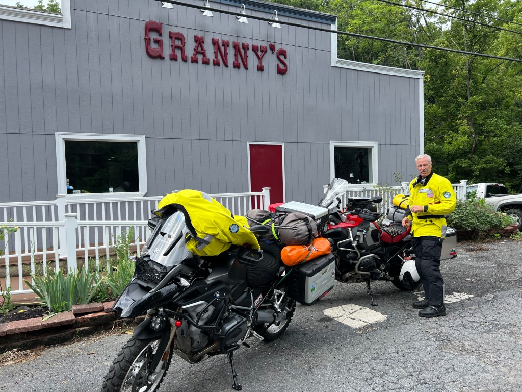“Hey, how you doing? How long have been here? Jeff asked as he removed his helmet in front of Granny’s. “Doing well. Maybe 5 minutes,” I replied while I shut down my GPS and helmet intercom. Jeff and I have been riding together since 2013; we have a knack for timing our rendezvous points for simultaneous arrival. Jeff rode from Virginia Beach and I from Blacksburg, Virginia. We each had a three-hour ride from different ends of the state and met at Granny’s, a local restaurant, in Winchester, Virginia for a late breakfast. Our destination at the end of this first day would be Milford, PA, a long 560-mile ride.