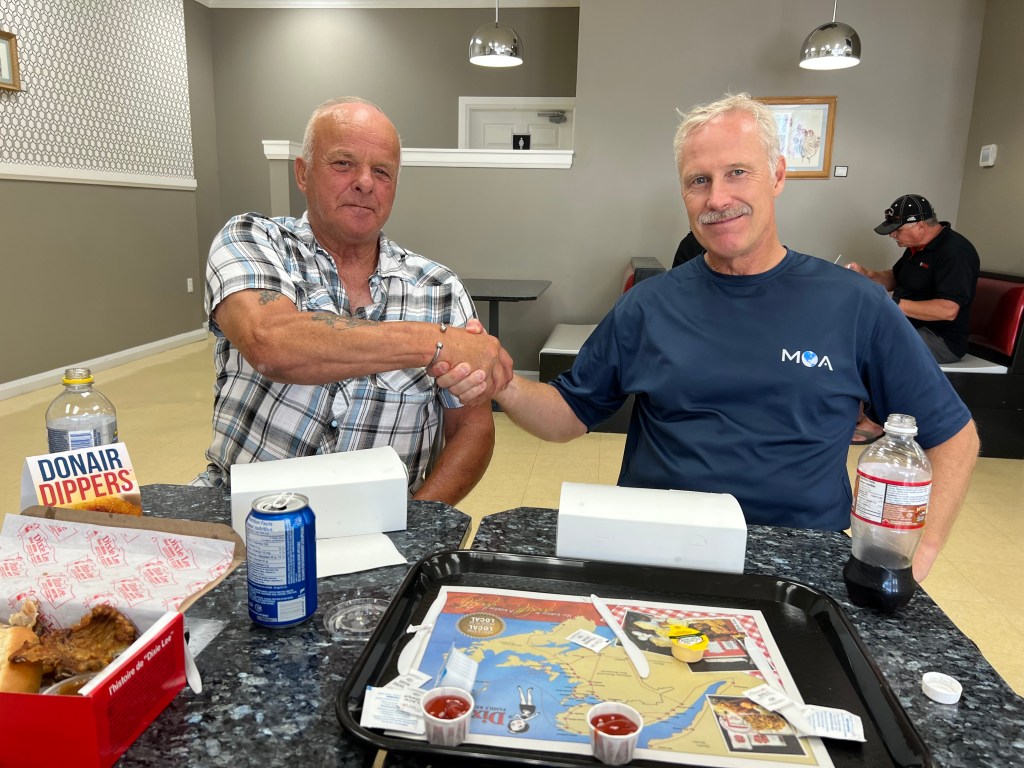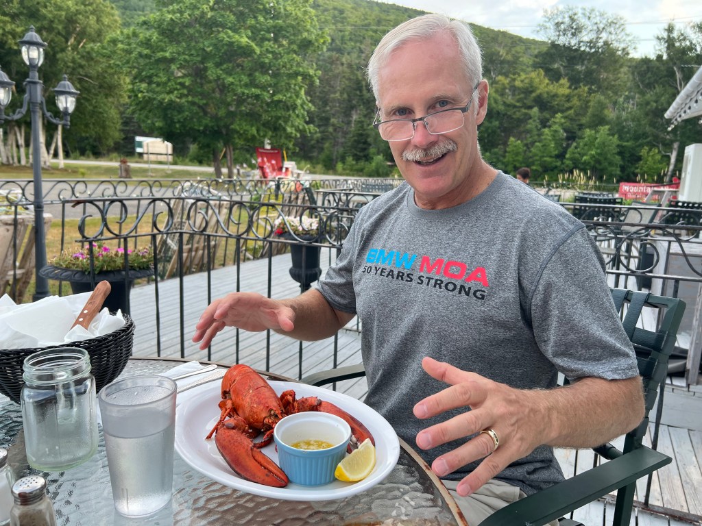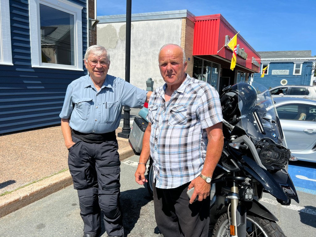 Norman lived in the next town and was here to visit a sick friend. He was a fisherman for 20 years then drove a refrigerated truck full of lobster and fish to places including Boston and New York for another 20 years. After sharing stories, we became fast friends and shared tee shirts. Norman was really fond of Jeff’s BMW shirt but would need to wait until Jeff could find and send the XL one he knew he had at home.