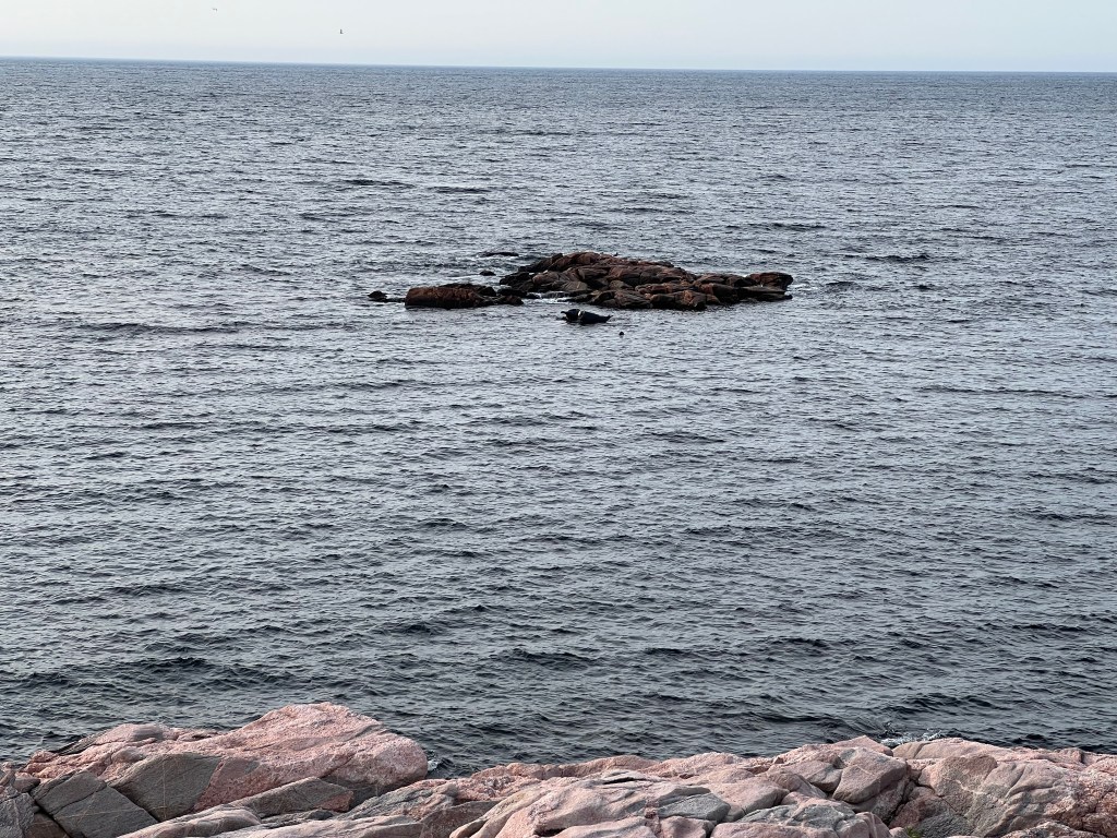 The Cabot Trail was indeed a gorgeous display of marine and terrestrial scenery. We saw no whales, but on the east side of the island, for thirty minutes, we watched a pod of seals playing around a large offshore rock. Jeff did see a moose just as it entered the tree line next to the road. Numerous road signs warn motorists of the perils of encountering this large animal. A tourist brochure for the Cabot Trail warns: “Watch for moose. If you crash into one, the best you can expect is an extended hospital stay. Many drivers do not survive direct encounters with these large animals.” One gleaned a negative vibe about this majestic animal from the roadside warnings, tourist literature, and discussions with local folks. On the other hand, we stopped for a brief rest next to a large abandoned barn with a large sign admonishing: “STOP THE CULL It cost taxpayers $430,000 to kill 37 moose. Friends of Cape Breton Moose.” I wonder if the moose on Cape Breton Island know how controversial they are.