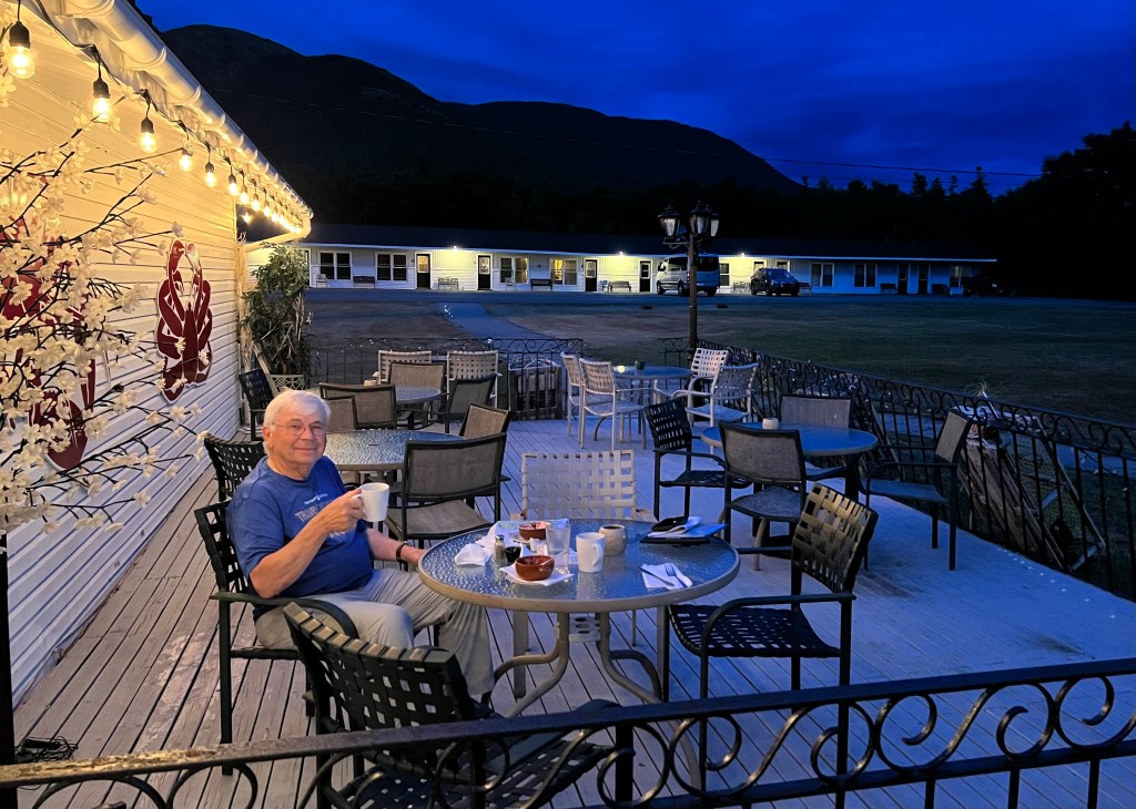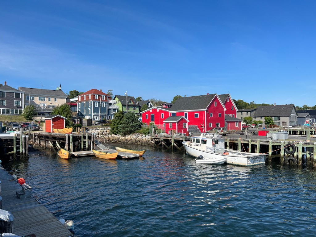 The second day’s ride to Oakland, ME, was equally long, but we received a warm welcome and a cold beer from nephew Brent and his husband Michael as we pulled into their driveway. Our stay with them doubled as a family visit as well as a travel stop-over. There’s always a lot of family gossip to catch up on when time is long between visits. These guys are wonderful hosts, and staying in their beautiful house on Messalonskee Lake in Oakland, ME, a tiny community, was a treat. Now we looked forward to a few days in Nova Scotia via Saint John