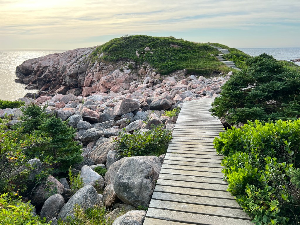 We spent two days on the trail although one could easily spend five or six if all the places of interest were done justice. The Whale Interpretive Center at Pleasant Bay was particularly interesting, not only for its content but for the long conversation we had with Mildred, one of the elderly local volunteers who lived in the area her entire life. She shared many stories about the island, fishing, whale watching, local culture, and the harsh, isolating winters. Just down the road from the museum was the Mountain View Hotel where we stayed and had a lovely dinner on the patio. We shared space with a mother/daughter couple from Quebec City who lauded the beauty and culture of their town and prodded us to visit.