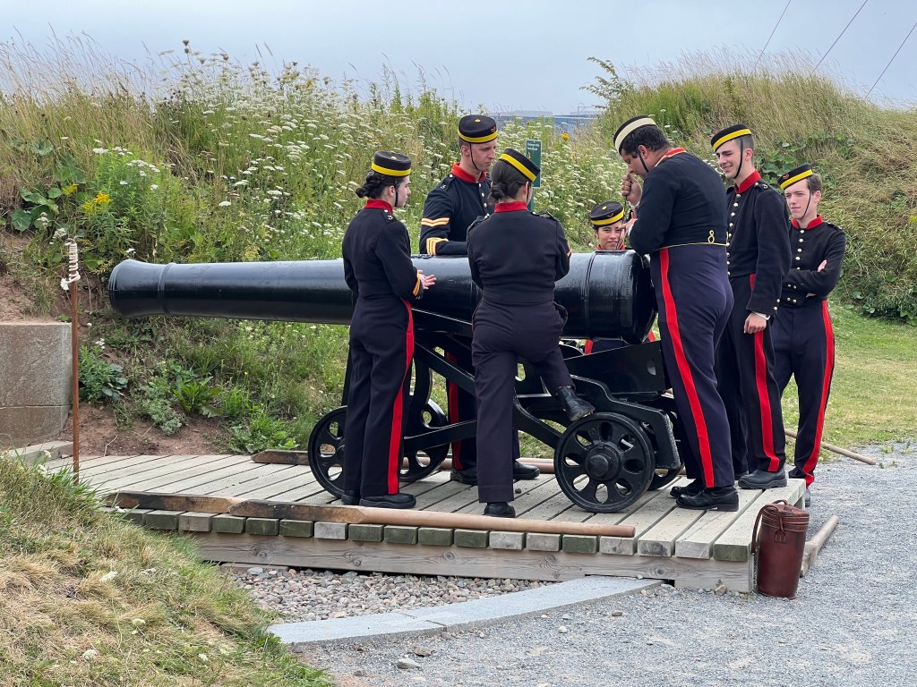 The history of Halifax and much of Nova Scotia was beautifully displayed and, to some degree, re-enacted at the Halifax Citadel National Historic Site. The Halifax Citadel is certainly a comprehensive museum, but it’s a lot more than that. Every day, the Citadel comes to life with the sounds and color of its re-enactment interpreters, the 78th Highlanders, and the Royal Artillery. Dressed in the same uniforms that their respective regiments wore in the mid-1880s, they guard the entrance and conduct marching and band drills on the parade grounds. Historians say that Halifax, a city on the sea, owes its existence to the Citadel. This fortification on the large hill overlooking the easily defended harbor below led the British military to establish the town at this location. Today, the Citadel continues to watch over the downtown core, although now it serves as an active display of the city’s proud history. Everyone we met at the Citadel was enthusiastic and eager to share their knowledge of this place. The Citadel was clearly the place to begin our inquiry.