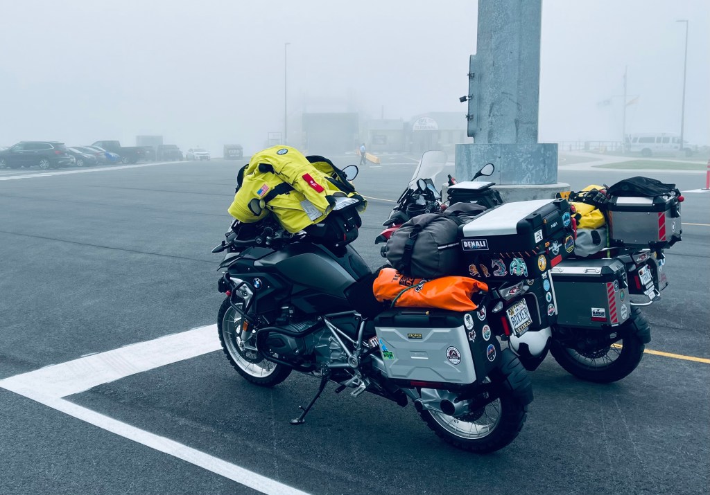 Bay Ferries Limited, the ferry operator, posted a strong statement about arriving at the terminal no less than 1.5 hours prior to the 8:00 AM departure. Jeff was already up and had completed a mile walk by 5:30, which meant we would arrive 2 hours prior, in the fog, and first in line. It’s a military thing—always get there first for an edge on the enemy, a habit hard to break.