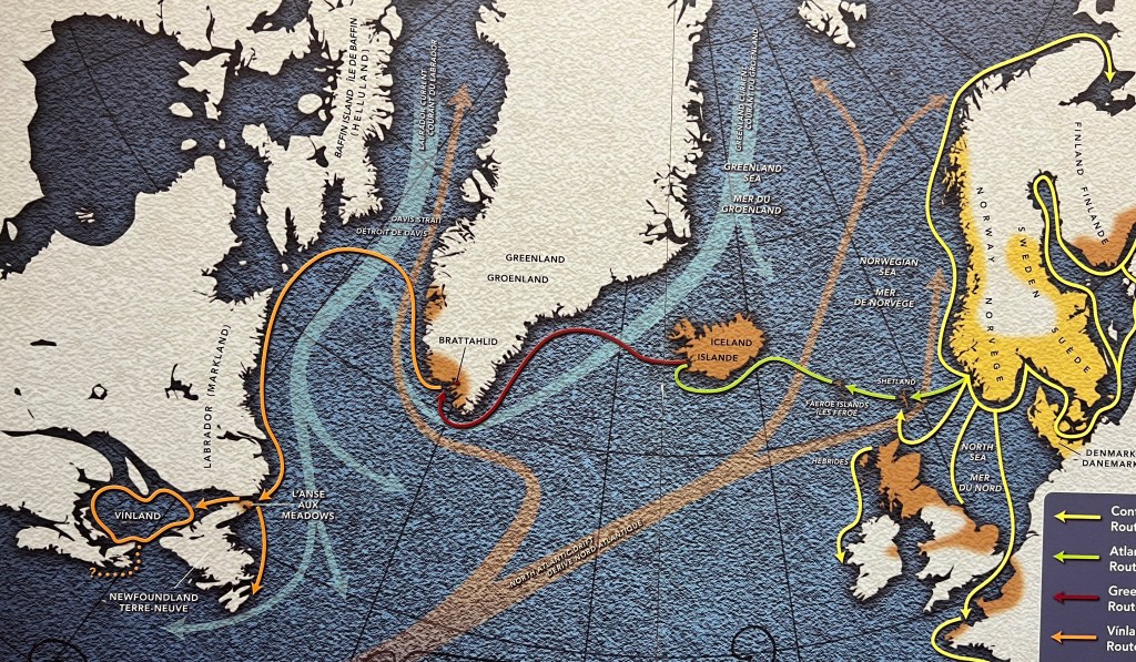 Areas of Norse habitation and the ocean routes they traveled during the 11th century.