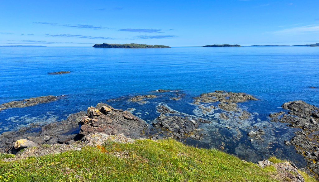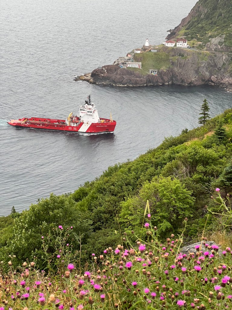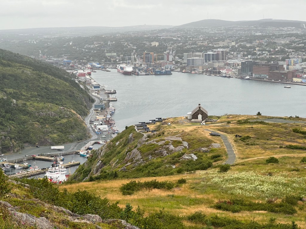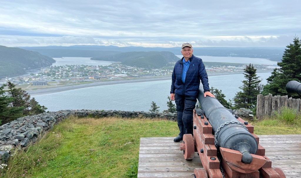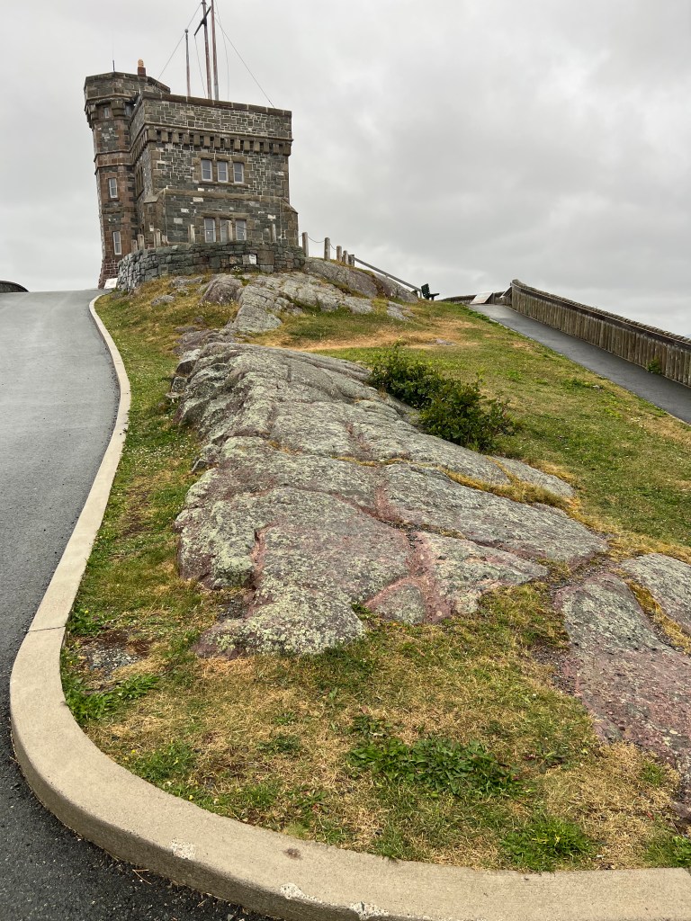 The clouds were close to the tops of Newfoundland’s hills when we departed the ferry. Nonetheless, we still had an excellent view of Placentia, a small village on the shore of the Avalon Peninsula. That view was offered from Castle Hill National Historic Site, a fortification initially called Fort Royal by the French who built it in 1662. In 1713, the Treaty of Utrecht forced the French to abandon their establishments in Newfoundland. It was a lovely view; a rising sun on a clear morning would have made it stunning. We couldn’t see it from Castle Hill, but within the village was a pub/bistro called The Three Sisters. We found it. Their Portuguese fish soup, a large chunk of sourdough bread, and an excellent coffee made a delicious lunch on this cloudy, chilly day.