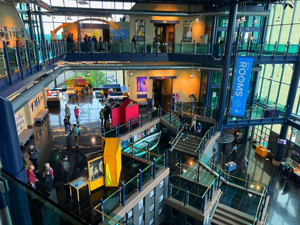 Newfoundland and Labrador’s most significant public cultural space is called The Rooms, a huge multi-level museum building housing the country’s diverse peoples’ history, heritage, and artistic expression. Its collections, exhibits, and programs tell stories through art, artifacts, archaeology, architecture, and archival records. Since it opened in 2005, The Rooms has presented hundreds of exhibitions and thousands of education and public programs for over a million visitors. When in St. John’s, it is a must-see/do attraction. We spent two hours in The Rooms; if you can, to do it justice, plan for two days.