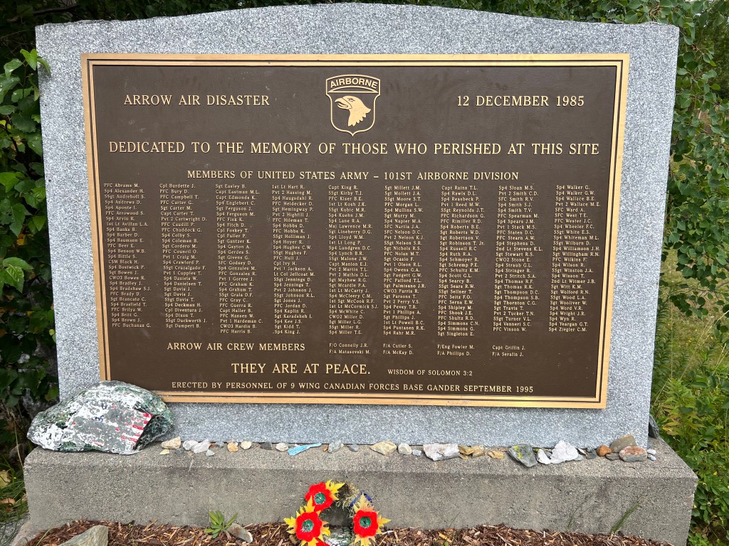One gets a similar feeling about the kindness and generosity of the local people at the Silent Witness Memorial just outside Gander. In line with airport runway 22, in a clearing next to Gander Lake, is a memorial dedicated to the memory of 256 American soldiers who lost their lives in a plane crash on December 12, 1985.
