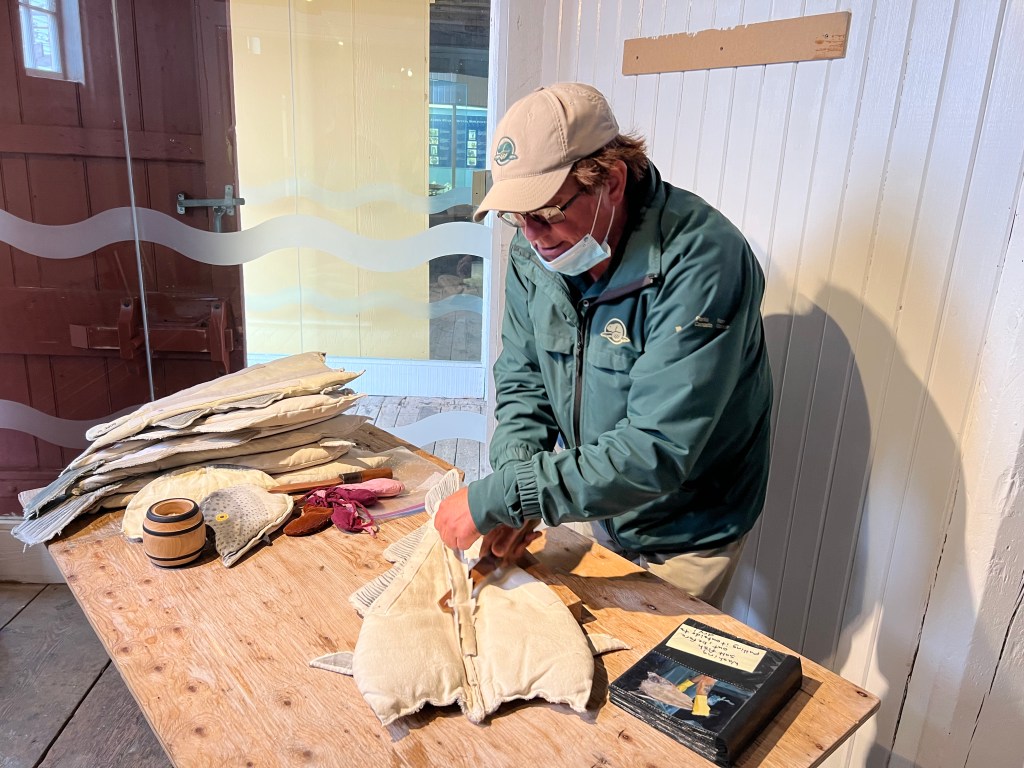 Rick Street, a Parks Canada employee, demonstrated the process of cleaning, salting, and drying cod as it was done for several hundred years in Newfoundland.